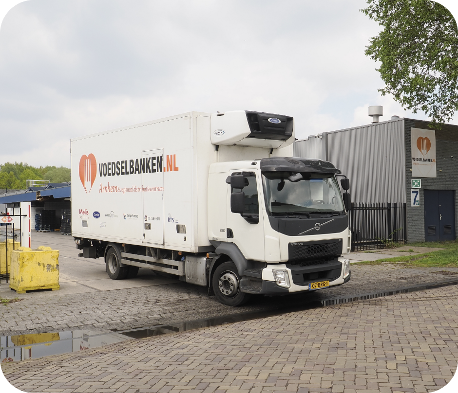Vanuit ons magazijn aan de Bruningweg 7 in Arnhem bedienen we 26 Voedselbanken in Gelderland en Oost-Utrecht.